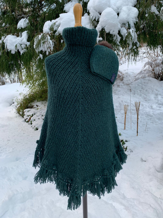 a plain poncho in dark green delicious and soft mix of merino and baby alpaca,