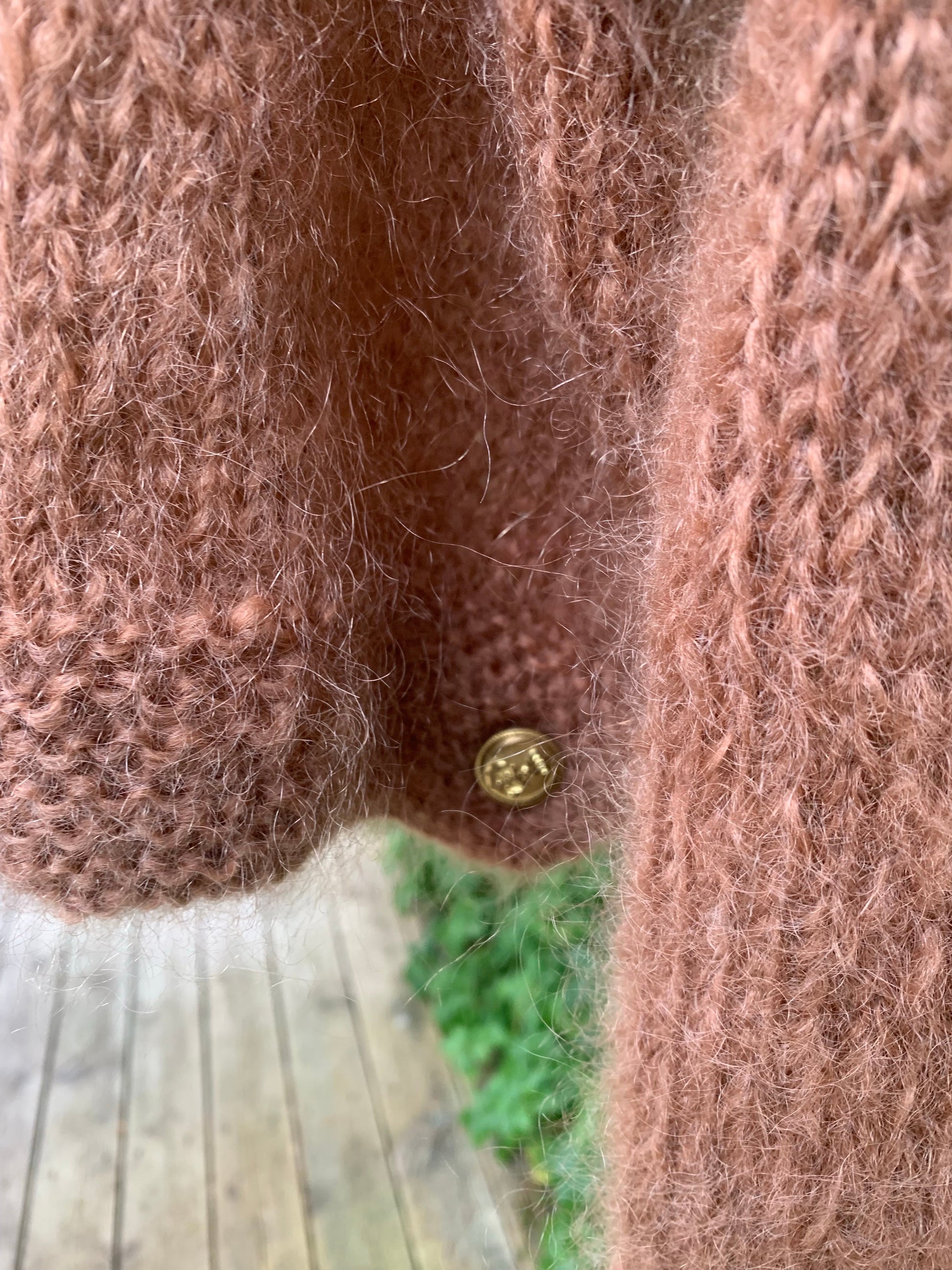 Autumn - er en strikkeoppskrift på en superfeminin og ensfarget, beige, mohair genser med trekvart erme og båthals. Mansjettene er pyntet med en dekorativ, vintage knapp i messing i front. Genseren er designet i et varig og klassisk design.