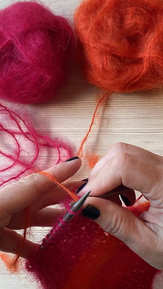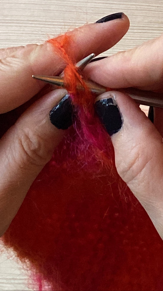2. Dra sakte i garnet. Maskene løsner èn og èn. Ikke riv.