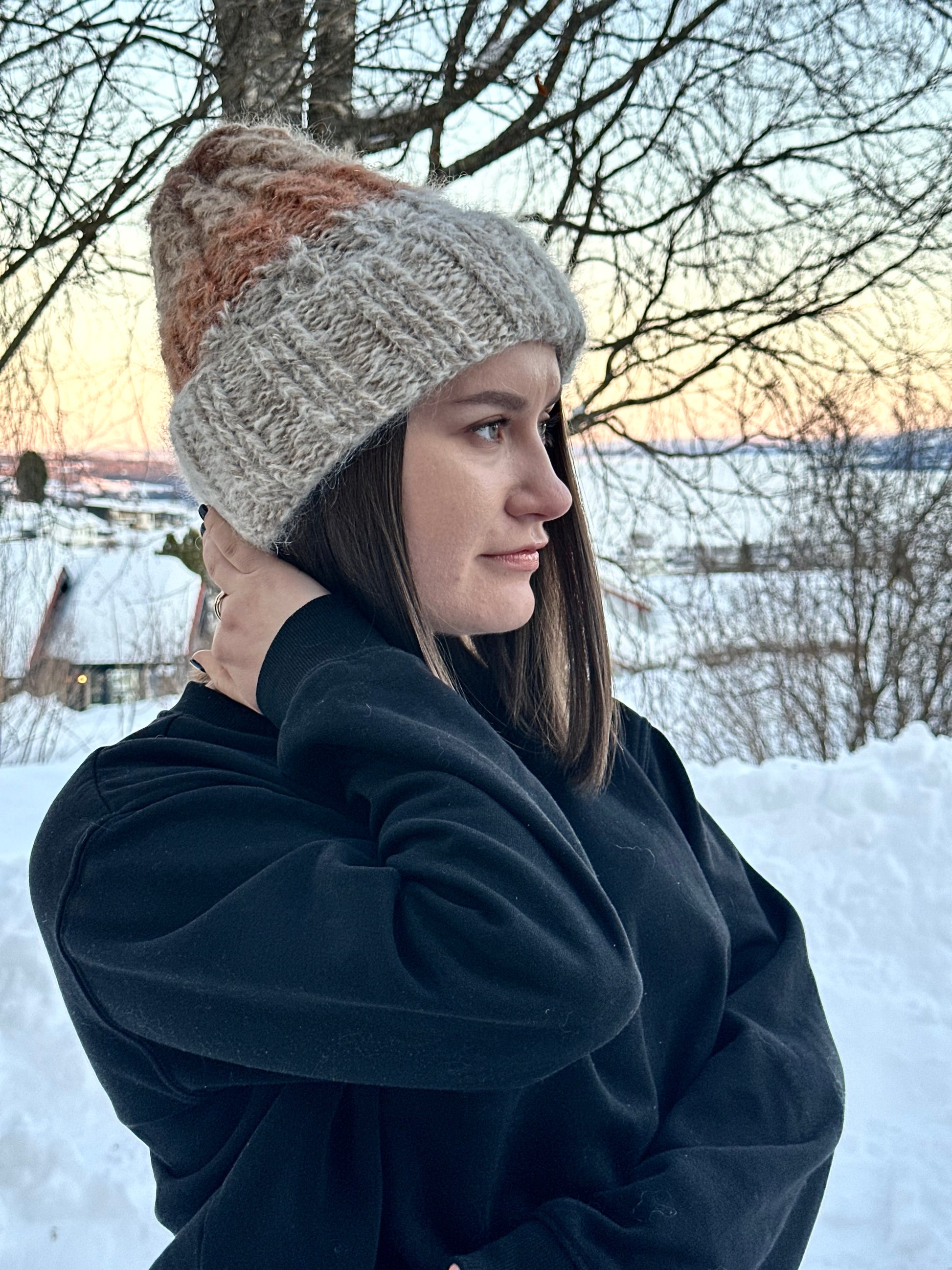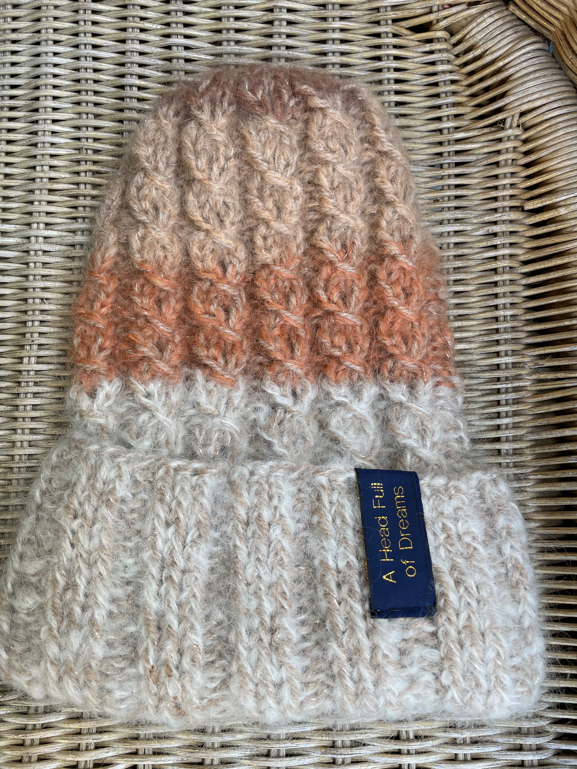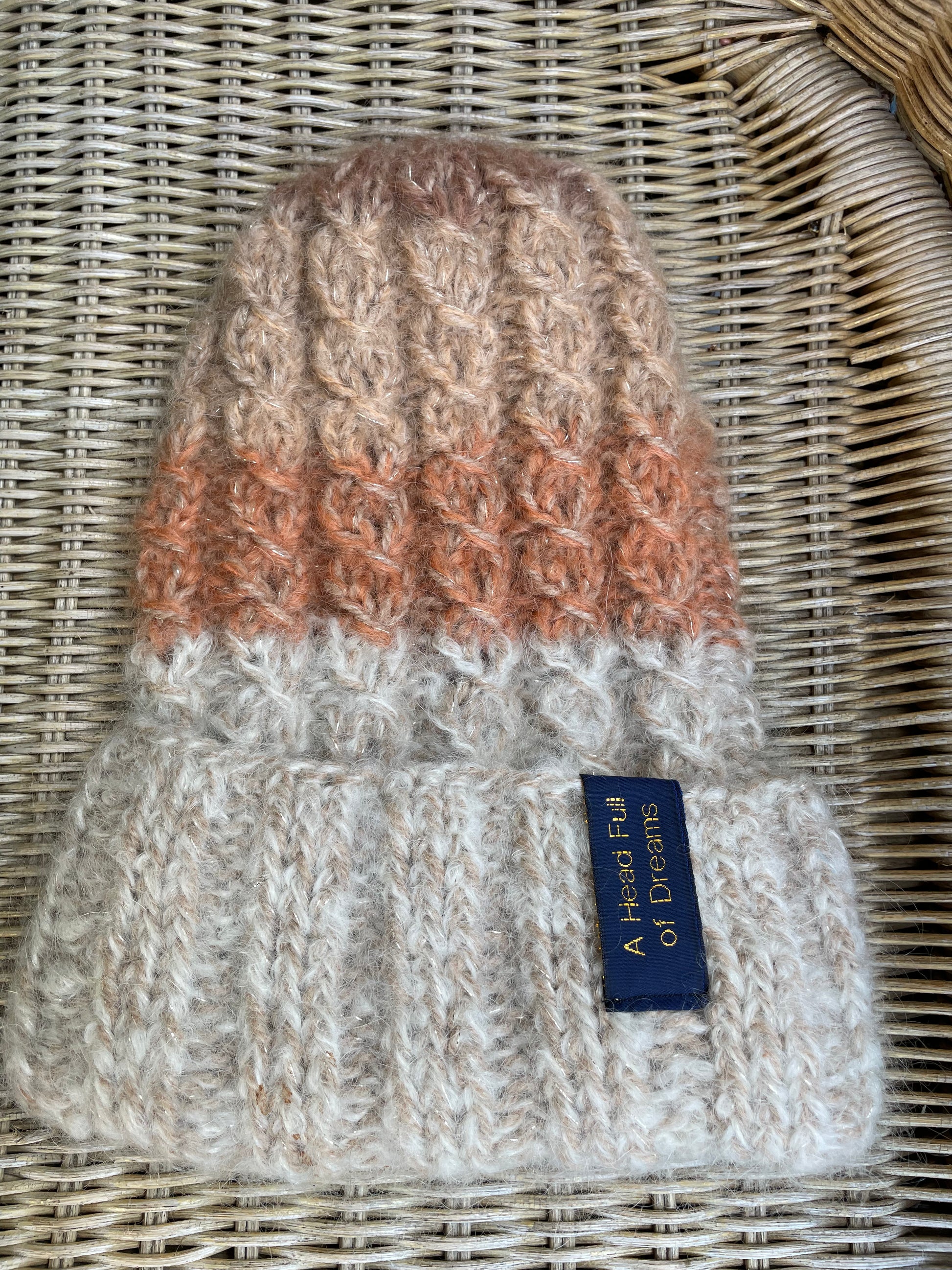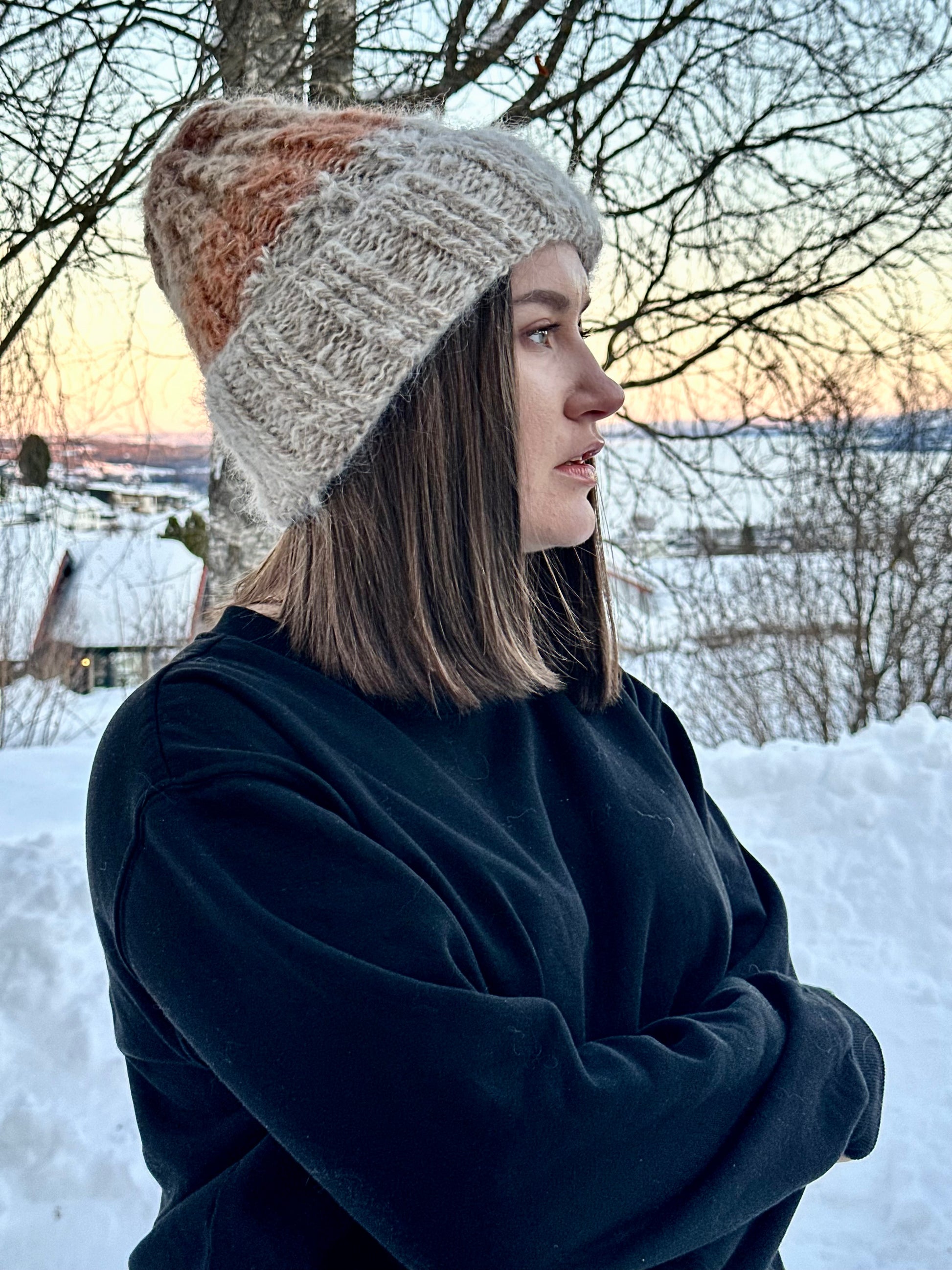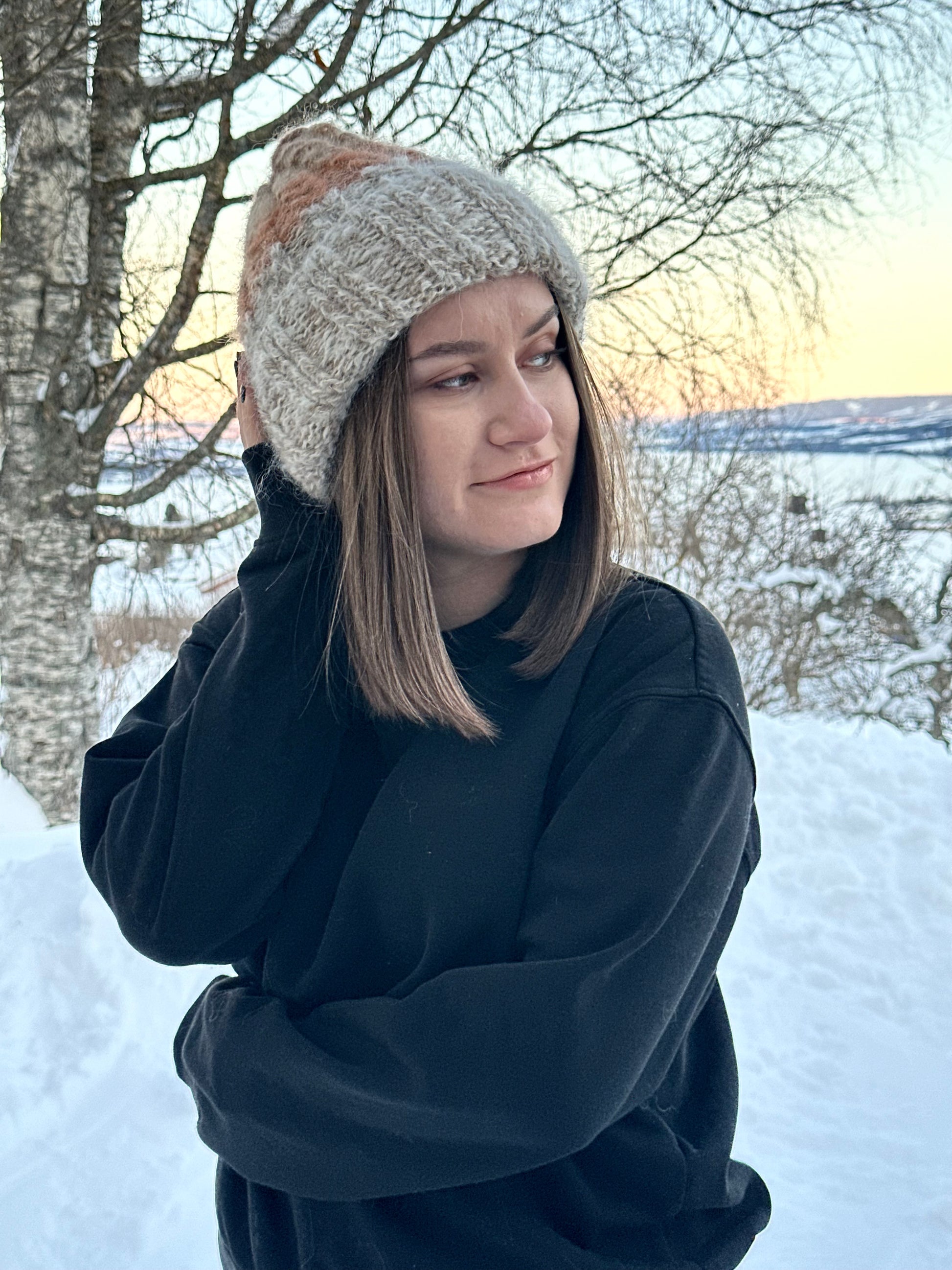 Birch - from A HEAD FULL OF DREAMS COLLECTIONS, is a beanie knitted in double mohair and gold, in colors inspired by the frosty Norwegian birch.