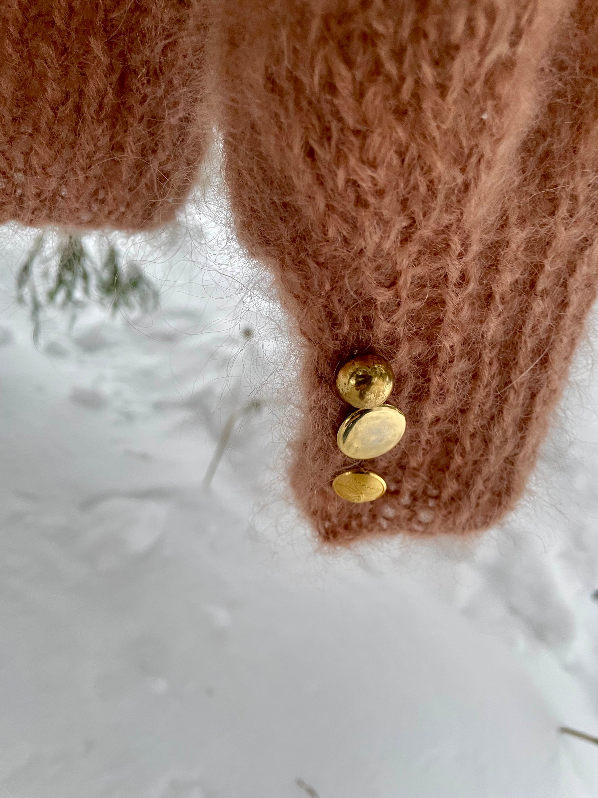 Hint of Spring - er en strikkeoppskrift på en klassisk og lettere versjon av Arctic Snow Lux Edt. med et snev av vår i luften, designet i myk mohair, og med vintage knapper på mansjettene. Dette er en litt mer edgy og urban variant enn superklassiske Arctic Snow Lux.