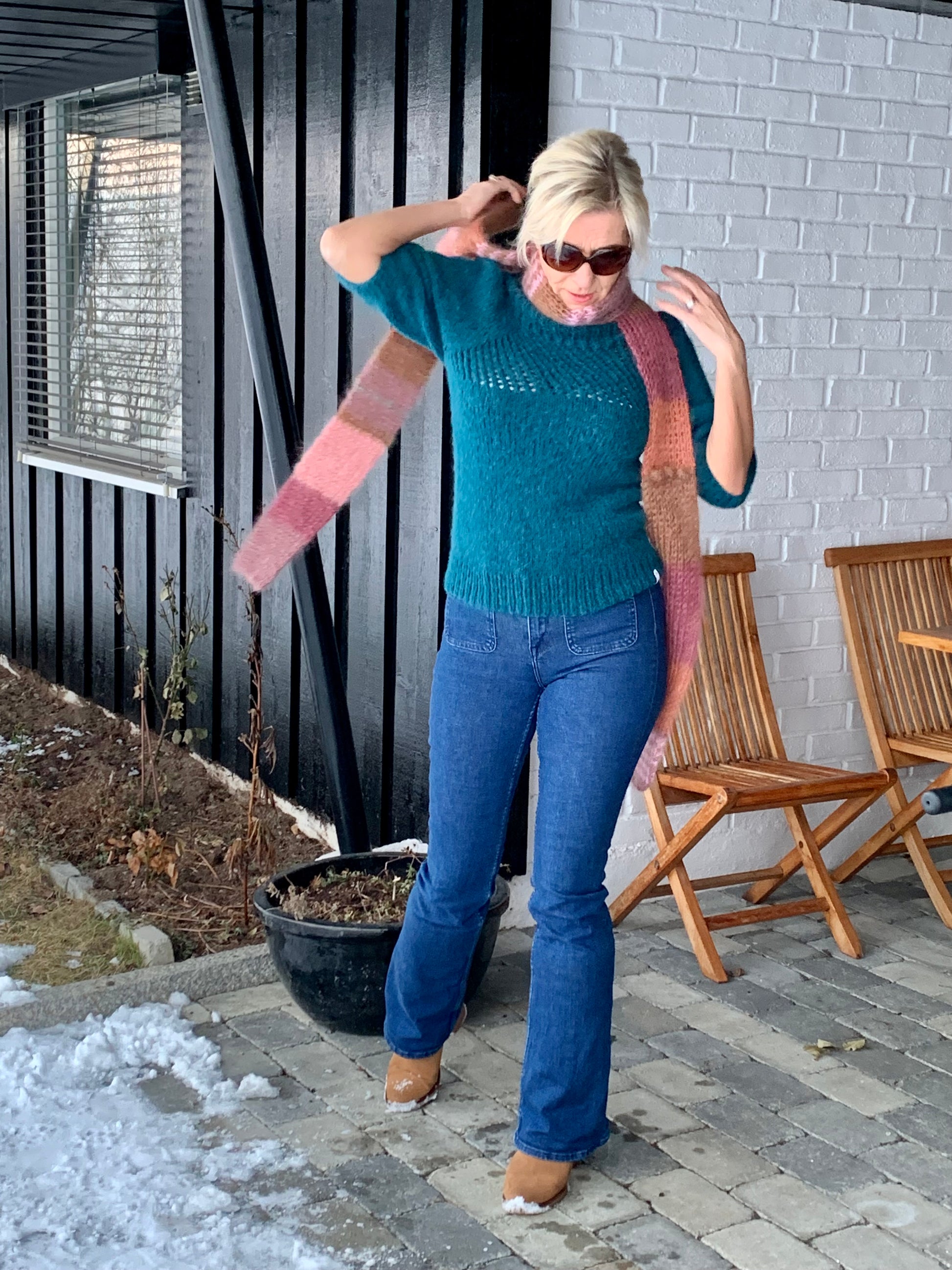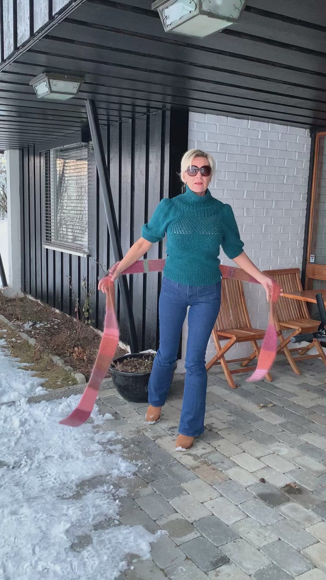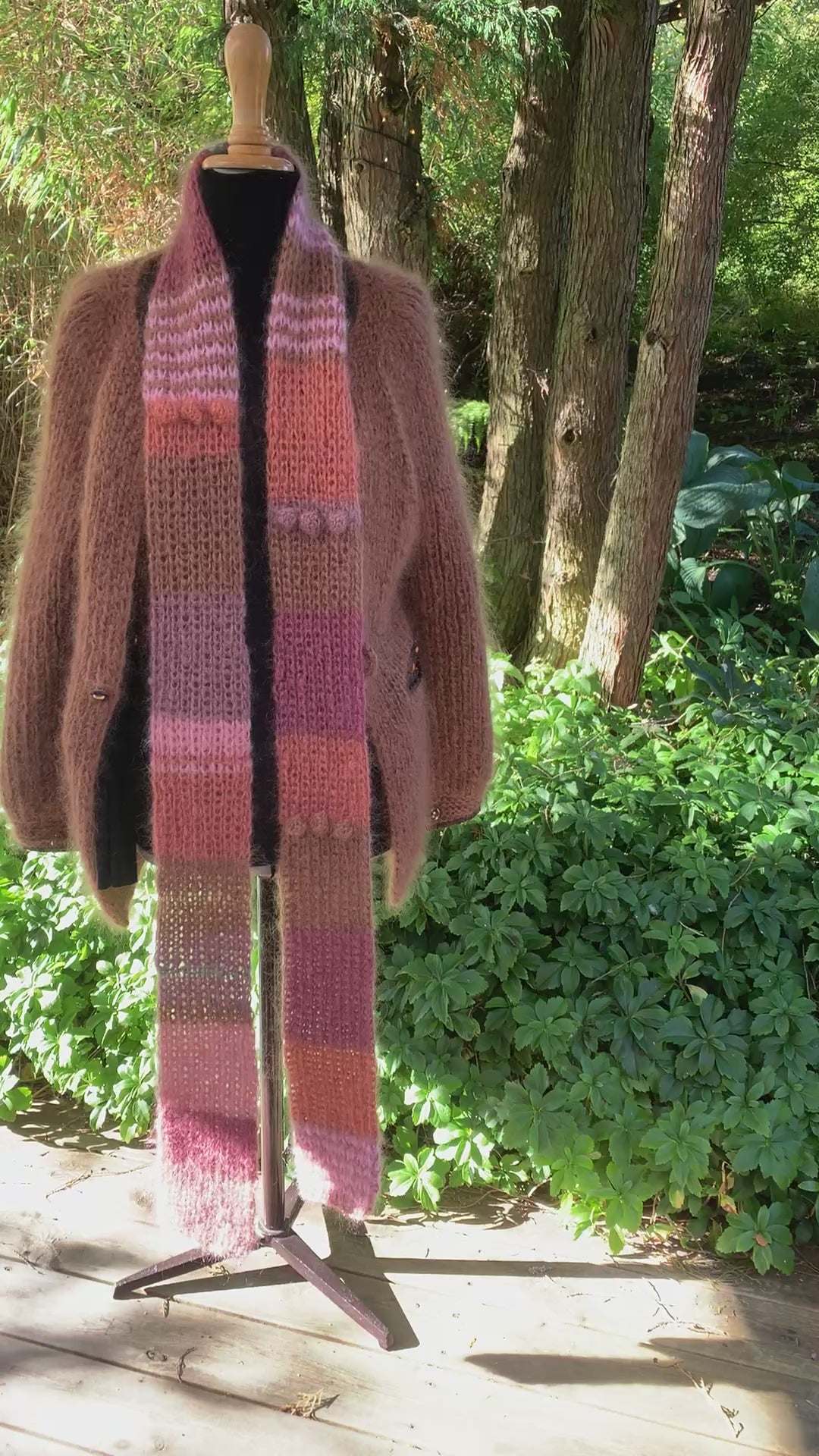 Carrie Bradshaw's Scarf - inspired by the series Sex in the City, is a scarf in hypermodern patch technique, knitted in 6 different colors (light pink, rose, green, brown, burgundy, apricot). The scarf is knitted in half patent, which gives the scarf extra depth and warmth.