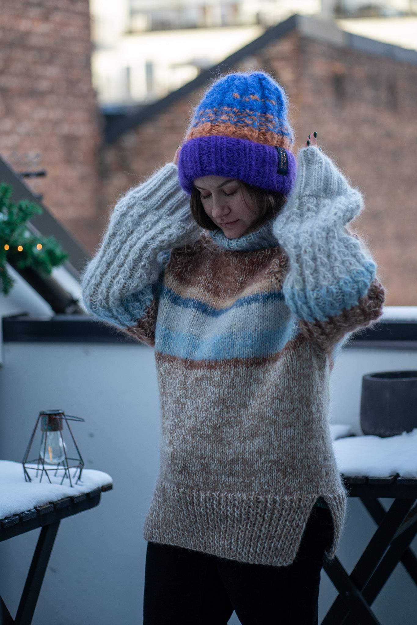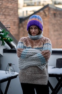 Midnight Blue - is a knitting pattern for a blue striped braided beanie from the A HEAD FULL OF DREAMS series.