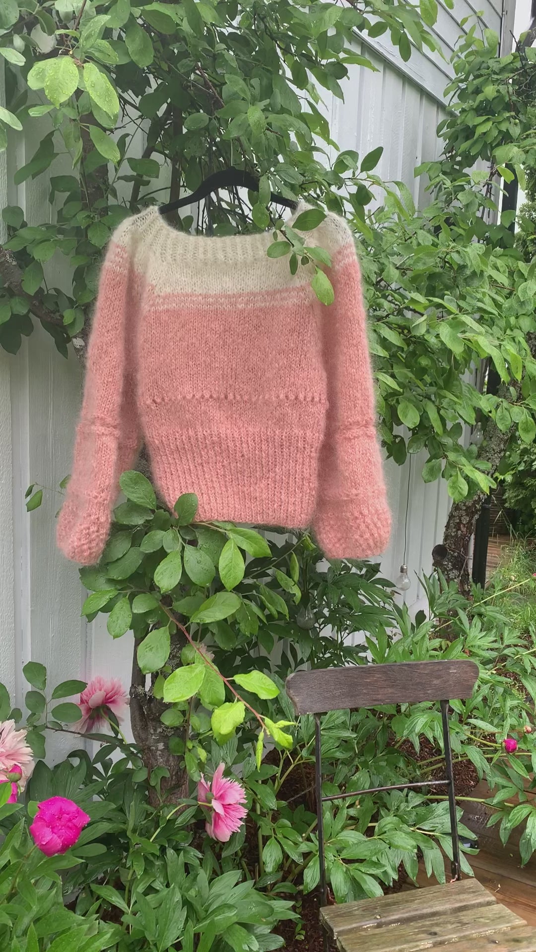 Summer in Oslo - is a knitting pattern for an off-shoulder sweater, inspired by a warm, lovely and slow summer day in Oslo when all of Oslo is half empty and in holiday mode, the asphalt is warm, wonderful music is pouring out of cafes and restaurants, there is a smell of flowers from bushes and trees and everyone is in summer mode.